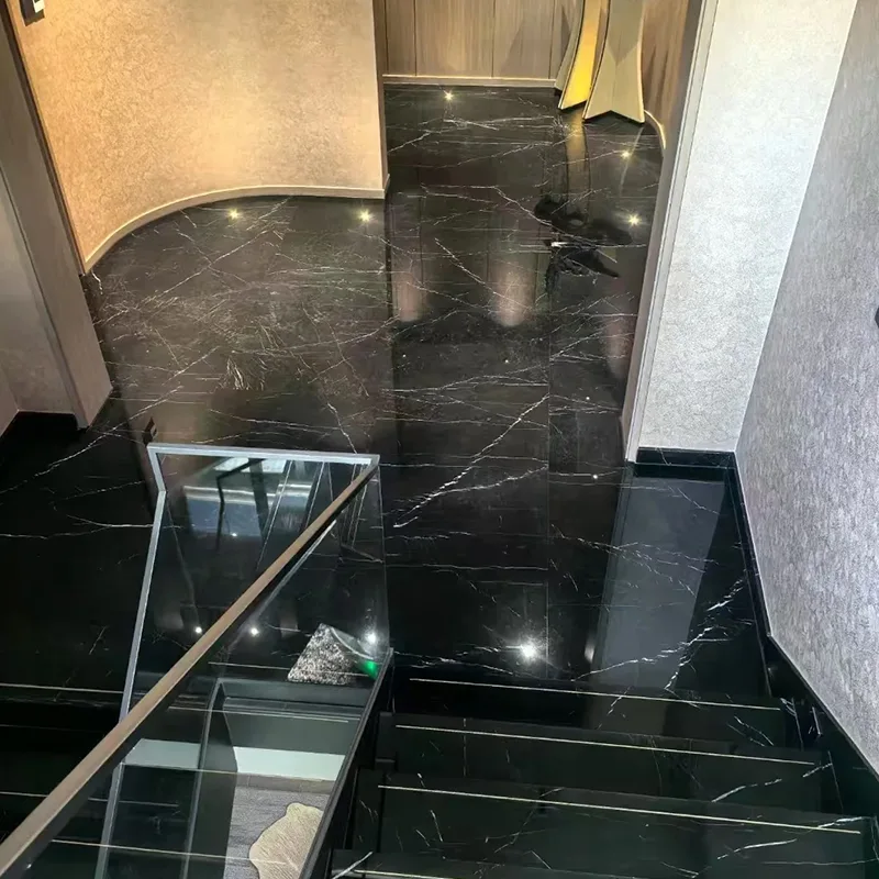 China Marquina Marble Slab은 가장 일반적인 검은 대리석 중 하나입니다. 이 중국 대리석은 단순한 정맥과 좋은 가격으로 디자이너와 주택 소유자에게 인기가 있습니다. 많은 내부 공간 이이 대리석을 바닥과 계단 트레드에 사용합니다.