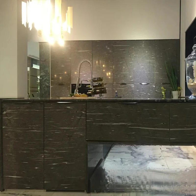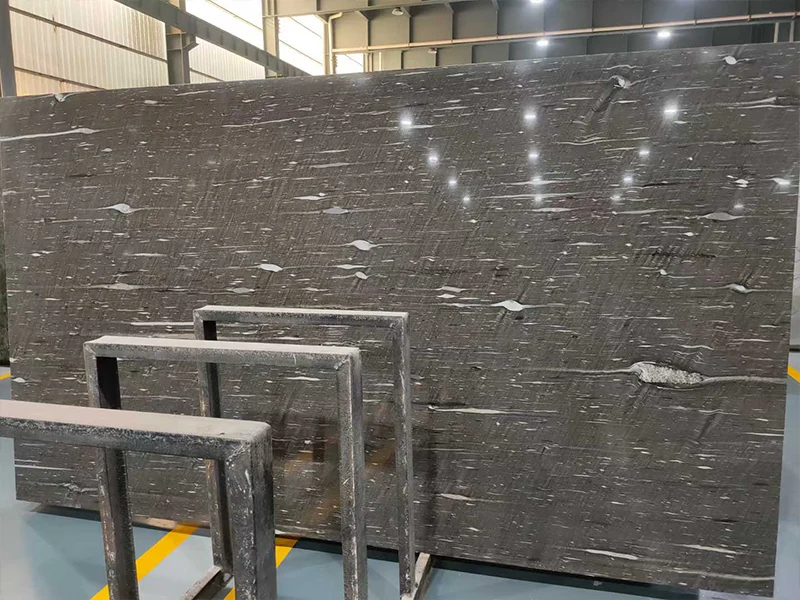 검은 실크 화강암은 고급 인테리어 디자인을위한 특수 재료입니다. 어두운 검은 색은은과 흰색 정맥과 우아하게 대조되므로.