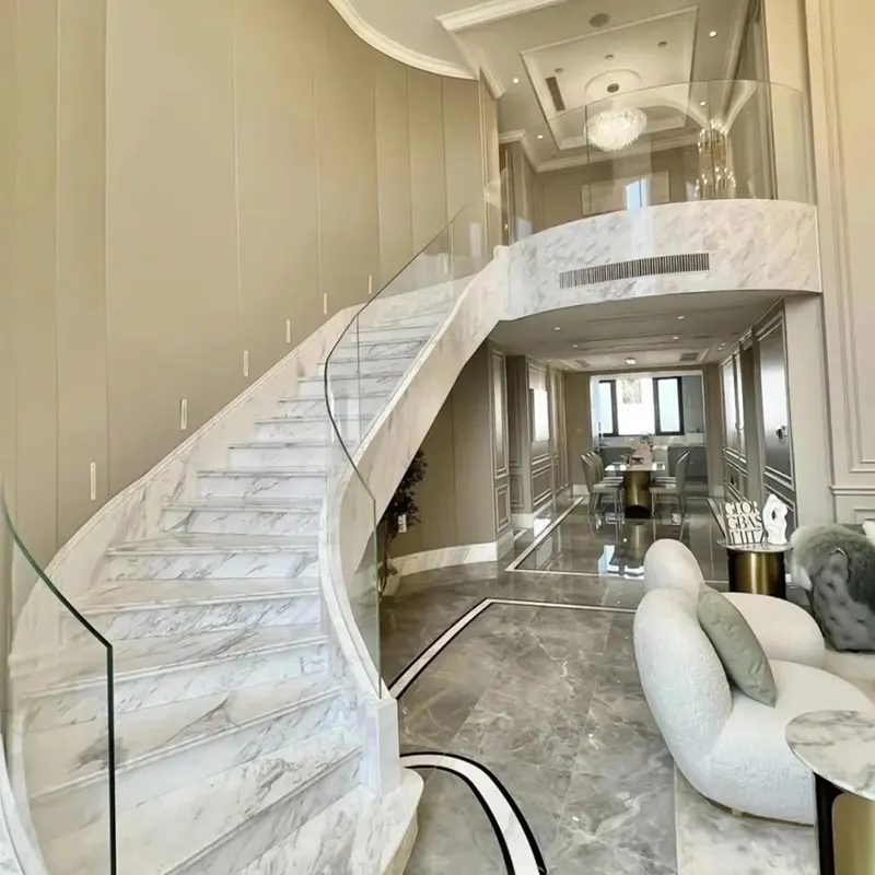 Among all its applications, Jazz White Marble really sparkles in staircase designs. The continuity of the veining from one step to the next produces a dramatic flow. The polished surface not only reflects light but also gives the stairway a grand and wide sensation. Jazz White Marble Slab staircases become architectural centrepieces in high-end residential or hotel designs.