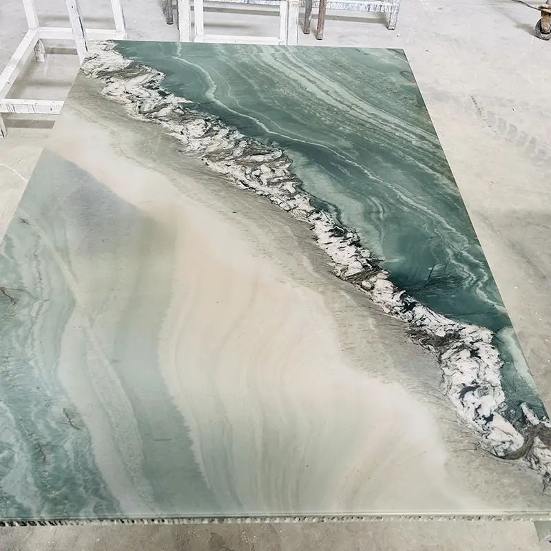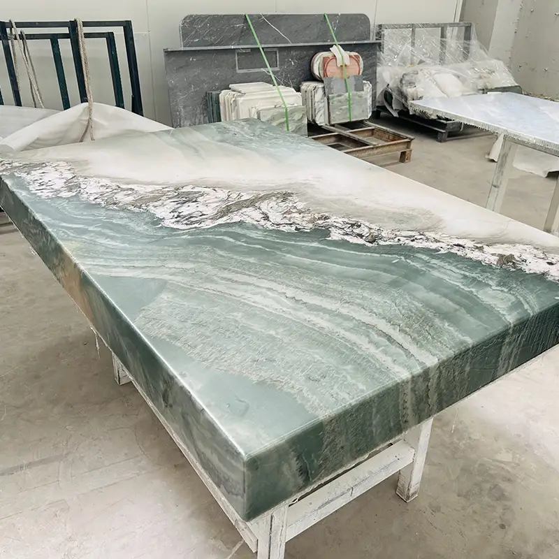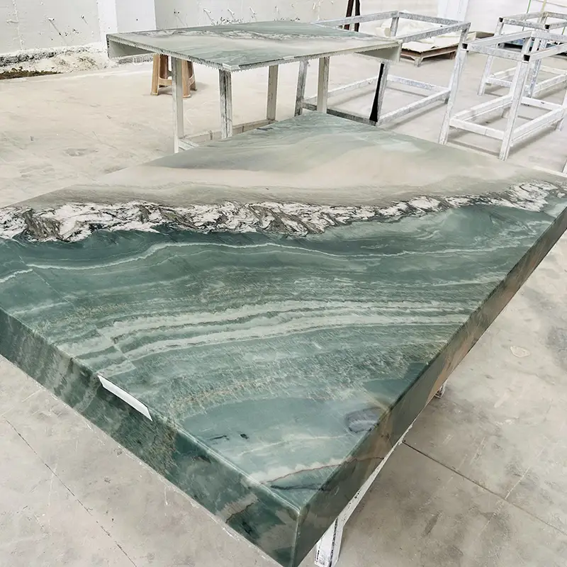 짙은 숲의 녹색으로 가벼운 현자, 석판은 종종 흰색, 갈색 및 금의 눈길을 끄는 정맥을 갖습니다. 각 녹색 쿼츠 라이트 슬래브는 각각이 다르고 맞춤형 외관을 제공하기 때문에 자연적인 예술 작품입니다.