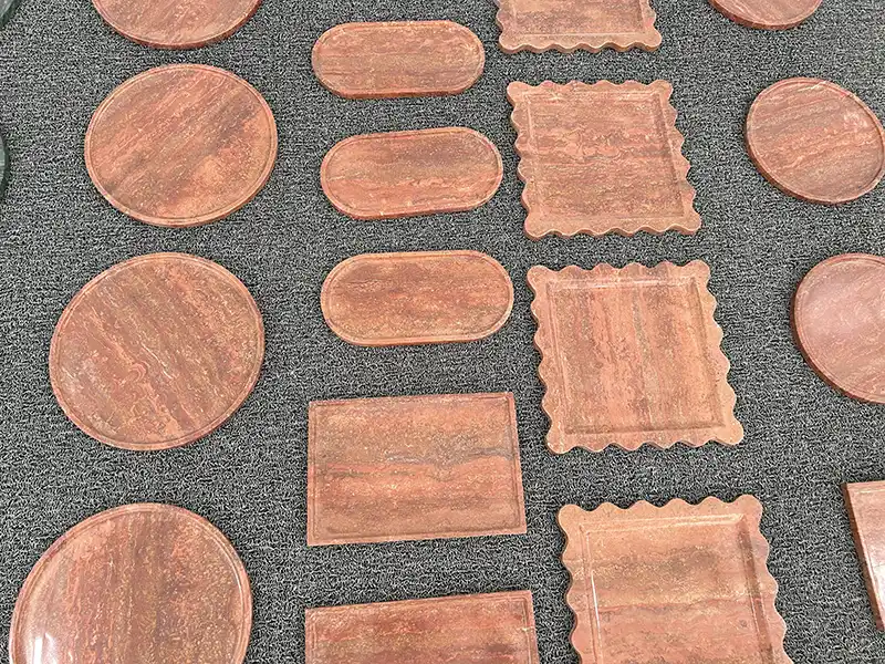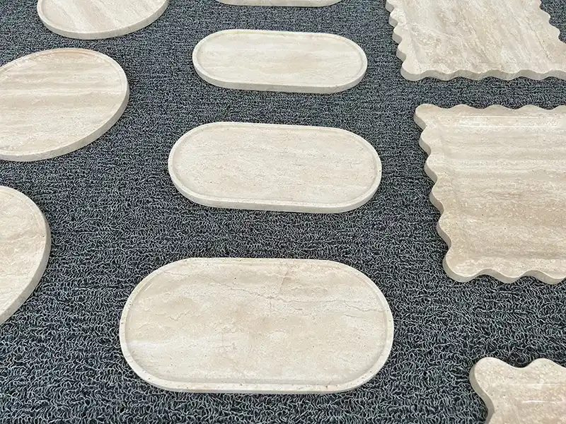 둥근 석회화 트레이, 타원형 석회화 트레이, 큰 둥근 석회질 트레이, 부채로 된 석회화 트레이, 작은 석회화 트레이 등은 많은 모양과 크기의 석회화 트레이 일뿐입니다. 맞춤형 크기 및 에지 프로파일은 또한 Wow Stone과 같은 공급 업체가 제공합니다.