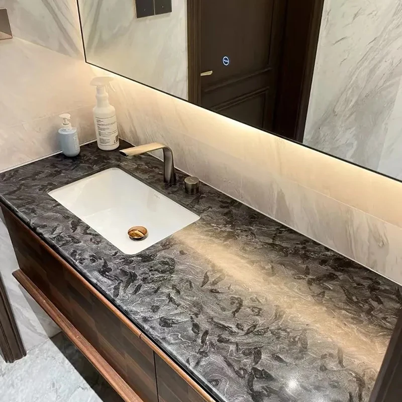 검은 화강암 욕실 세면대 탑 : 치아를 닦는 동안 싱크대에 기대어있는 순간? 반짝이는 마무리는 부드럽고 매끄럽게 부드럽고 상쾌하여 일상적인 작업을 작은 즐거움으로 만듭니다.