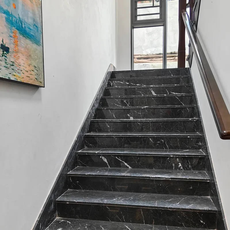 계단은 Wyndham Grey Marble을 사용하기에 가장 극적인 장소 중 하나입니다. 짙은 회색 대리석 타일은 방에 웅장한 느낌을주고 바닥이 중단없이 함께 흐릅니다.